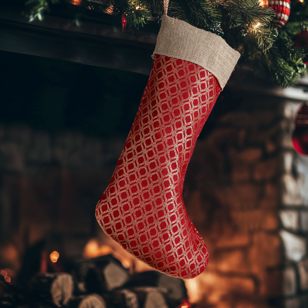 Διακοσμητική χριστουγεννιάτικη κάλτσα, ιδανική για να στολίσει το τζάκι, το δέντρο ή οποιοδήποτε γιορτινό σημείο του σπιτιού. Κατάλληλη για τοποθέτηση δώρων, γλυκών και μικρών εκπλήξεων, προσθέτοντας μια ζεστή και χαρούμενη πινελιά στη χριστουγεννιάτικη ατμόσφαιρα.