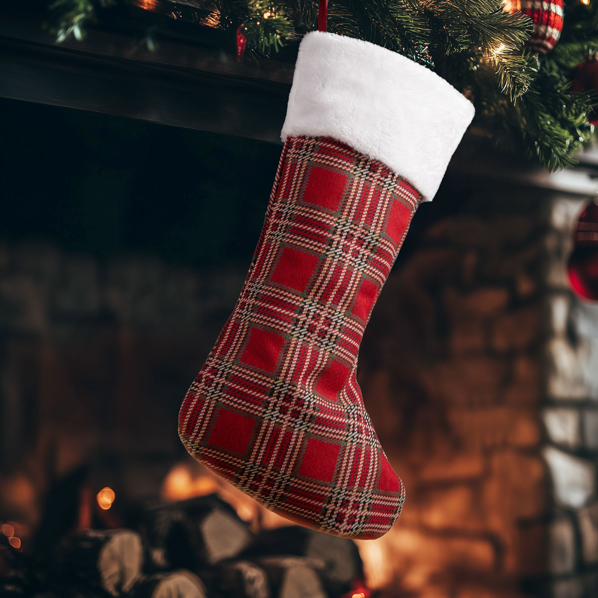 Διακοσμητική χριστουγεννιάτικη κάλτσα, ιδανική για να στολίσει το τζάκι, το δέντρο ή οποιοδήποτε γιορτινό σημείο του σπιτιού. Κατάλληλη για τοποθέτηση δώρων, γλυκών και μικρών εκπλήξεων, προσθέτοντας μια ζεστή και χαρούμενη πινελιά στη χριστουγεννιάτικη ατμόσφαιρα.